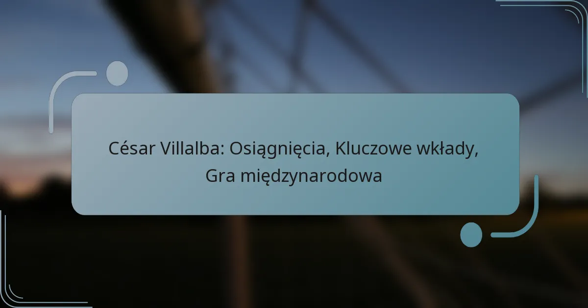 César Villalba to profesjonalny piłkarz znany ze swojego wpływowego wkładu w różne kluby oraz występów międzynarodowych. Jego kariera pokazuje znaczące osiągnięcia, które podkreślają jego umiejętności i zaangażowanie w sport.